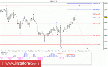 Валютная пара продолжает построение повышательного набора волн. Предполагаемая волна b, в а, в С завершила свое построение около отметки 0,9728, что соответствует 50,0% по Фибоначчи. Если это действительно так, сейчас ожидается протяженное повышение котировок с целями, находящимися около расчетных отметок 1,0004 и 1,0050, что соответствует 127,2% и 161,8% по Фибоначчи. Дивергенция MACD_ака предупреждает о возможном отходе котировок от достигнутых максимумов.Материал предоставлен компанией InstaForex — www.instaforex.com