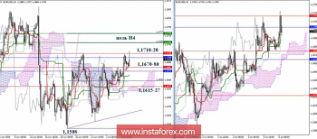Повышательная цель на пробой облака Н4 солидарна с перспективами подъёма к району сопротивлений 1,1752-76, но на пути расположены достаточно сильные укрепления из месячных и дневных уровней – 1,1710-20 и 1,1670-80. Именно на борьбу с данными зонами сопротивления пара уже потратила несколько последних дней. Зона поддержек, способная изменить сложившийся баланс сил на младших таймах и отметить действующую цель Н4, расположена сегодня в районе 1,1615-27 (облако Н4 + дневной Тенкан). С закреплением ниже 1,1615 появится понижательная цель Н4, а последующие медвежьи планы будут упираться в минимум 1,1508.