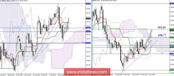 В пятницу игроки на повышение не смогли преодолеть сопротивление недельного Киджуна (150,77), тем не менее им удалось закрыть неделю выше максимального экстремума предыдущей недельной свечи. Результатом стало сохранение и развитие бычьих настроений. В настоящий момент достигнуто историческое сопротивление, усиленное недельным Фибо Киджуном (152,14). Преодоление данного района сопротивления ликвидирует недельный мёртвый крест и позволит рассмотреть ориентиры повышательной цели на пробой дневного облака.