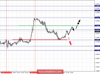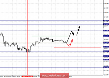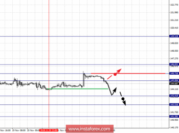 По паре Евро/Доллар ожидаем движение к уровню 1.1315. По паре Фунт/Доллар цена оформила локальную структуру для верха от 21 ноября. По паре Доллар/Франк выраженных начальных условий для верха ожидаем до уровня 1.0013. По паре Доллар/Иена цена формирует потенциал для верха от 20 ноября. По паре Евро/Иена ситуация находится в равновесном состоянии, разрешения которой ожидаем после пробоя 127.95. По паре Фунт/Иена цена находится в корректировочной зоне от нисходящей структуры и формирует потенциал для верха от 20 ноября.