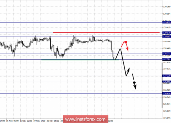Краткосрочное нисходящее движение возможно в коридоре 128.23 – 127.98, пробой последнего значения должен сопровождаться выраженным движением к уровню 127.22, в коридоре 127.22 – 126.95 краткосрочное нисходящее движение, а также консолидация. Потенциальным значением для низа считаем уровень 126.41.