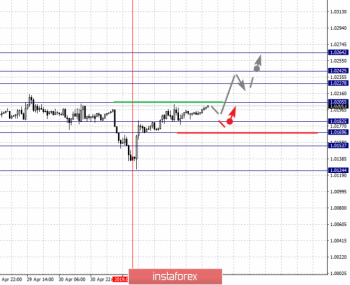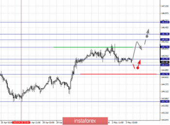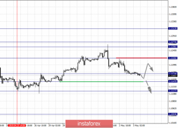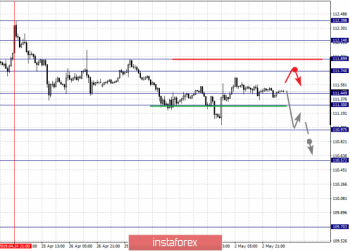 По паре Евро/Доллар цена близка к отмене восходящей структуры от 25 апреля, для чего необходим пробоя уровня 1.1147. По паре Фунт/Доллар цена находится в коррекции от восходящей структуры 25 апреля. По паре Доллар/Франк следим за начальными условиями для верха от 1 мая. По паре Доллар/Иена продолжения движения книзу ожидаем после прохода ценой шумового диапазона 111.44 – 111.30. По паре Евро/Иена диапазон 124.48 – 124.30 является ключевой поддержкой для восходящей структуры от 26 апреля. По паре Фунт/Иена продолжаем следить за восходящей структурой от 26 апреля, продолжения движения кверху ожидаем после пробоя 145.73, уровень 145.00 ключевая поддержка.