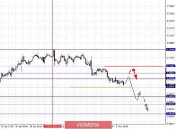 Краткосрочное восходящее движение возможно в коридоре 0.7003 – 0.7015, пробой последнего значения приведет к углубленному движению, здесь цель – 0.7031, этот уровень является ключевой поддержкой для низа.