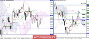 К концу прошлой недели игроки на повышение смогли выйти из зоны дневной коррекции и дотянулись до ключевых сопротивлений данного участка 146,08-85 (нижняя граница недельного облака + недельный Киджун + дневное облако). Основная задача игроков на повышение сейчас заключается в закреплении на текущих позициях, далее будет важен пробой ключевых сопротивлений. Это позволит рассмотреть возможности для реализации новых повышательных ориентиров. Ближайшие сопротивления сейчас сосредоточены в районе 148,24-49 (месячный Тенкан + недельный Фибо Киджун). Если игроки на повышение сегодня возьмут паузу, которая передаст инициативу сопернику, то усиление медвежьих настроений будет пропорционально завоеванию поддержек 146,08 – 145,19 – 144,50 – 143,50.