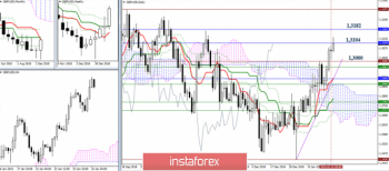 Пара тестирует сопротивление месячного Тенкана (1,3104). Результат взаимодействия определит дальнейшее развитие событий. Преодоление уровня позволит игрокам на повышение протестировать следующий рубеж – недельный Киджун (1,3182). Формирование отбоя может привести к снижению, поддержками в этом случае выступят 1,3000 – 1,2968 (исторический уровень + максимальный экстремум + недельный Фибо Киджун) и 1,2900 – 1,2834 (недельный Киджун + месячный Фибо Киджун + дневной Сенкоу Спан Б + дневной Тенкан).