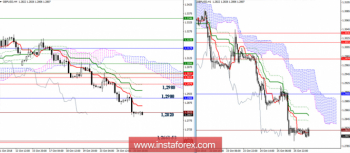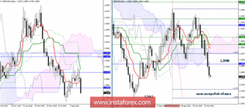 Индикатор Ишимоку сейчас на стороне игроков на понижение. Цели младших таймфреймов давно отработаны, поэтому ориентирами для снижения сейчас выступают уровни старших таймов, ближайшие 1,2661-53. В настоящий момент пара затормозила в районе исторической поддержки 1,2820. В случае развития восходящей коррекции сопротивлениями сегодня выступят 1,2860 (Тенкан Н4 + Киджун Н1) – 1,2900 – 1,2980.