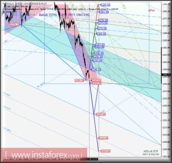 Minuette (h1) Gold Spot Предыдущий обзор от 27.11.2017 23:01 ____________________ Развитие движения цены инструмента (Gold Spot) 11 — 19 декабря 2017 г. будет обусловлено отработкой диапазона: -> нижняя граница ISL61.8 зоны равновесия вил операционного масштаба Minuette — уровень сопротивления 1249.50; -> начальная линия SSL вил операционного масштаба Micro — уровень поддержки 1243.55. ____________________ Перспектива (1) -> пробой уровня поддержки 1243.55 (начальная линия SSL вил операционного масштаба Micro) совместно с контрольной линией LTL Micro (1242.00) -> продолжение нисходящего движения Gold Spot к конечной линии FSL (1225.00) вил операционного масштаба Minuette, подробности смотрим на графике. ____________________ Перспектива (2) -> пробой уровня сопротивления 1249.50 (ISL61.8 Minuette) -> развитие движения Gold Spot в границах зоны равновесия (1249.50 <-> 1256.50 <-> 1263.00) вил операционного масштаба Minuette, а также канала 1/2 Median Line (1254.50 <-> 1258.50 <-> 1262.00) и зоны равновесия (1263.00 <-> 1269.00 <-> 1275.00) вил операционного масштаба Micro, детали показаны на графике. ____________________ Обзор составлен без учета новостного фона и не является руководством к действию (выставления ордеров «sell» или «buy»). ZUP и Вилы Эндрюса (термины, понятия, параметры). Материалы для изучения Анализа ZUP & APL`s.