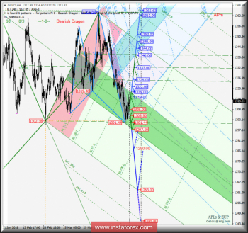 Minute (h4) Gold Spot Предыдущий обзор от 24.04.2018 19:40. ____________________ Развитие движения цены инструмента (Gold Spot) в период 04 — 18 мая 2018 г. будет обусловлено отработкой границ зоны равновесия (1297.50 <-> 1309.00 <-> 1319.00) вил операционного масштаба Minute. Разметка отработки указанных выше уровней линий вил операционного масштаба Minute представлена на графике. ____________________ Перспектива (1) -> Пробой уровня сопротивления 1319.00 (верхняя граница ISL38.2 зоны равновесия вил операционного масштаба Minute) -> развитие движения Gold Spot в границах каналов 1/2 Median Line вил операционных масштабов -> Minuette (1318.00 <-> 1322.00 <-> 1326.00) и Minute (1326.00 <-> 1333.00 <-> 1340.00). Подробности смотрим на графике. ____________________ Перспектива (2) -> Пробой уровня поддержки 1297.50 (нижняя граница ISL61.8 зоны равновесия вил операционного масштаба Minute) -> вариант продолжения развития нисходящего движения Gold Spot к линии реакции RL100.0 Minute (1290.00) и конечной линии FSL Minute (1263.00). Детали показаны на графике. ____________________ Обзор составлен без учета новостного фона и не является руководством к действию (выставления ордеров «sell» или «buy»).