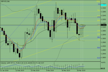 В среду технический анализ даёт движение вверх. Первая верхняя цель 1.3179 – откатный уровень 50% (жёлтая пунктирная линия).