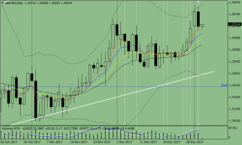 В среду цена, оттолкнувшись от верхней границы линий Боллинджера, ушла