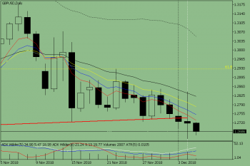 В среду нисходящее движение с первой целью 1.2658 – нижний фрактал.