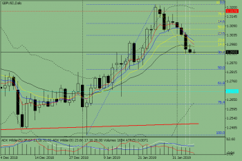 В четверг цена до новостей будет двигаться вверх в боковом канале. Первая верхняя цель 1.2968 – откатный уровень 14.6.% (жёлтая пунктирная линия). Новости будут скорее негативного характера.