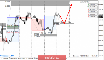 Альтернативная модель получит развитие в случае, если закрытие сегодняшней американской сессии произойдет ниже НКЗ 1/4 1.3292-1.3288. Это повлечет формирование зоны накопления, где на первый план вновь выйдет НКЗ 1/2 1.3250-1.3241.