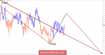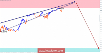 Пояснения к рисункам: Упрощенный волновой анализ использует простой вид волны, в виде зигзага из 3 частей (А-В-С). На каждом ТФ анализируется последняя, незавершенная волна. Зоны демонстрируют расчетные участки с наибольшей вероятностью разворота.
