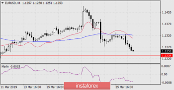 EUR/USDЕвро в точности отразился от точки совпадения технических линий – линии ценового канала дневного масштаба и индикаторной трендовой линии Крузенштерна на четырёхчасовом графике. Сигнальная линия осциллятора марлин на daily уже довольно прочно основалась на территории снижения тенденции.На текущий момент до первого целевого уровня цене осталось 20 пунктов. С закреплением под ним (1.1234) ждём дальнейшего снижения цены к низлежащему целевому уровню 1.1155 (110,0% Фибоначчи от ветки движения 24 сентября — 12 ноября). Ещё ниже расположена цель 1.1075 (123,6% Фибоначчи).