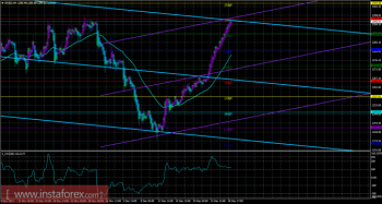 Техническая картина золота 29 декабря показывает, что цена продолжает сильное и безоткатное восходящее движение, о чем сигнализирует индикатор Хайкен Аши. Старший канал направлен вниз, что свидетельствует о нисходящей тенденции в долгосрочном плане. Младший канал развернулся наверх, что означает восходящую тенденцию в среднесрочном плане. Сейчас цена находится выше скользящей средней и выше уровня Мюррея «5/8», что прогнозирует восходящее направление движения в ближайшее время. Первой целью для движения вверх, таким образом, является уровень Мюррея «6/8» — 1296,88. Если этот таргет будет преодолен, то новой целью для движения станет уровень Мюррея «7/8» — 1304,69. Скользящая средняя направлена вверх, а цена располагается выше нее, поэтому сейчас более вероятно восходящее движение. Хайкен Аши окрасил последние бары в фиолетовый цвет, что указывает на локальное движение вверх, разворот индикатора вниз укажет на виток коррекционного движения, а лонги станут на время не актуальными. Ордера на продажу станут актуальными только после закрепления цены ниже мувинга. Индикатор CCI находится около уровня 100, что сигнализирует о наличие сильной перекупленности инструмента, по-прежнему ожидается нисходящий откат.