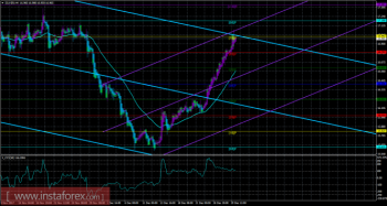 Исходя из анализа серебра 2 января следует, что цена продолжает движение вверх без единого признака начала нисходящей коррекции. Старший канал направлен вниз, что свидетельствует о нисходящем направлении глобального тренда. Младший канал развернулся вверх, что означает восходящую тенденцию в краткосрочном плане. В данный момент цена находится выше мувинга и выше уровня Мюррея «6/8», что делает более вероятным продолжение восходящего движения. Первой целью для движения вверх сейчас выступает уровень Мюррея «7/8» — 16,992, который уже достигнут. Если цена преодолеет первый таргет, то следующей актуальной целью для движения вверх будет выступать уровень Мюррея «8/8» — 17,188. Скользящая средняя линия направлена вверх, а цена располагается выше нее, что сигнализирует о текущем восходящем уклоне инструмента. Хайкен Аши окрасил последние бары в фиолетовый цвет, что сигнализирует о движении вверх. Окрас 1-2 баров в голубой цвет будет означать начало нисходящей коррекции. Шорты станут актуальными только после закрепления ниже мувинга. Индикатор CCI находится около уровня 100, что сигнализирует о слабой перекупленности инструмента, по-прежнему ожидается нисходящая коррекция.