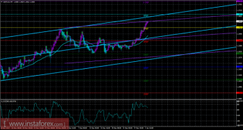 Курс фунта стерлингов против доллара США 3 января также продолжает восходящее движение, о чем свидетельствуют фиолетовые бары индикатора Хайкен Аши. Старший канал направлен вверх, что свидетельствует о восходящем направлении глобального тренда. Младший канал также развернулся вверх, что означает восходящую тенденцию и в менее долгосрочном плане. Цена сейчас находится выше уровня Мюррея «7/8», а также выше скользящей средней, что говорит в пользу восходящей тенденции в ближайшее время. Текущей целью восходящего движения является уровень Мюррея «8/8» — 1,3672. Если этот таргет будет преодолен, то новой актуальной целью будет уровень Мюррея «+1/8» — 1,3794. Индикатор Хайкен Аши окрасил последние бары в фиолетовый цвет, что свидетельствует о локальном восходящем движении, разворот индикатора вниз просигнализирует о витке нисходящего движения, а buy-позиции станут временно не доступными для открытия. Скользящая средняя направлена вверх, а цена находится выше нее, таким образом сейчас более актуальна восходящая тенденция. Короткие позиции можно будет рассматривать только после закрепления цены ниже скользящей средней линии и разворота вниз любого канала. Индикатор CCI находится около уровня 100, что обозначает слабой сильной перекупленности валютной пары, ожидается нисходящий откат.