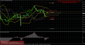 Швейцарская валюта полностью соответствовала общей тенденции четверга. Не сумев преодолеть нижнюю границу облака Ишимоку, цена отскочила от нее и начала восходящую коррекцию. Волатильностью минувшего дня составила 65 пунктов, несмотря на то что макроэкономических событий вчера было предостаточно. Это и решения (а точнее отсутствие оных) ЕЦБ, это и решение Национального Банка Швейцарии оставить ключевую ставку без изменений на отрицательном уровне -0,75%. Это и достаточно большое количество макроэкономических событий в Америке. Тем не менее, все торги валютной пары вчера прошли как по учебникам технического анализа. После отскока от линии Сенкоу Спан Б, цена скорректировалась к линии Киджун-сен и, не сумев ее преодолеть, теперь может возобновить движение вниз. Таким образом, сигнал на продажу от Ишимоку остается в силе, однако, до закрепления цены ниже облака, рассматривать шорты не рекомендуется. Полосы Боллинджера свидетельствуют о нисходящей тенденции по инструменту. В последние торговый день недели макроэкономических событий в мире практически не будет, поэтому волатильность инструмента может еще снизиться, а неделя завершиться ровно и спокойно.