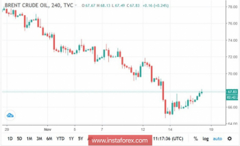 С точки зрения техники эксперты говорят о перепроданности по большинству осцилляторов, поэтому цена не смогла продавить психологически-важную отметку. Но на мой взгляд, основная причина кроется во влиянии фундаментальных факторов. Обратите внимание, что нефть корректируется на фоне вчерашних данных от API, которые свидетельствуют о резком увеличении запасов «чёрного золота» в США – показатель подскочил на 10,3 миллиона баррелей, то есть до 442,1 миллиона баррелей. Такой стремительный рост заставил призадуматься членов Картеля, и прежде всего представителей Саудовской Аравии. На горизонте замаячила торговая война за долю рынка, поэтому нефтетрейдеры ожидают соответствующую реакцию со стороны членов ОПЕК+. По предварительной информации, саудиты уже озвучили угрозу сократить добычу нефти в следующем году на 1,6 миллиона баррелей в сутки.
