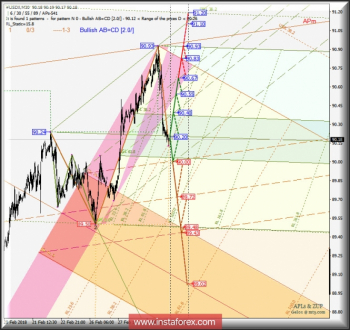 SubMinuette (m30) US Dollar Index ____________________ Развитие движения индекса доллара (#USDX) 02-07 марта 2018 г. будет обусловлено отработкой границ зоны равновесия (90.40 <-> 90.20 <-> 90.00) вил операционного масштаба Micro. Разметка отработки указанных выше уровней линий вил операционного масштаба Micro представлена на графике. ____________________ Перспектива (1) -> пробой уровня поддержки 90.00 (нижняя граница ISL61.8 зоны равновесия вил операционного масштаба Micro) -> развитие движения #USDX в границах канала 1/2 Median Line (90.00 <-> 89.72 <-> 89.43) вил операционного масштаба SubMinuette, детали показаны на графике. ____________________ Перспектива (2) -> пробой уровня сопротивления 90.40 (верхняя граница ISL38.2 зоны равновесия вил операционного масштаба Micro) -> развитие движения #USDX будет продолжено в канале 1/2 Median Line Micro (90.40 <-> 90.55 <-> 90.67) с перспективой достижения начальной линии SSL (90.83) вил операционного масштаба SubMinuette и обновления maximum 90.63, подробности смотрим на графике. ____________________ Обзор составлен без учета новостного фона и не является руководством к действию (выставления ордеров «sell» или «buy»).