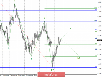 Пара предположительно продолжает построение первой волны нового восходящего участка тренда. Сейчас я рекомендую подождать прорыва отметки 1,1326 и покупать пару с целями, расположенными около отметки 1,1362. Также открывать покупки рекомендую около минимумов волны b, которая может начать свое построение, если отметка 1,1326 устоит.Материал предоставлен компанией InstaForex — www.instaforex.com