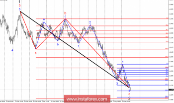 Предполагаемая волна 5, в с, в 2 продолжает свое построение, поэтому рекомендуется продавать пару с целями, расположенными около расчетных отметок 1,1715 и 1,1649. Учитывая силу понижательного тренда, волна 5 может принять более сложный вид, а инструмент продолжить снижение под отметку 1,1636, что приравнивается к 261,8%. Неудачная попытка прорыва зоны 1,1649 – 1,1636 позволит предполагать завершение построения волны с, в 2 и начинать формировать покупки.Материал предоставлен компанией InstaForex — www.instaforex.com