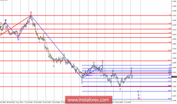 Пара GBP/USD предположительно завершила построение волны 4, в 3, в а. Если это действительно так, то сейчас ожидается дальнейшее падение, и я рекомендую продавать пару с целями, находящимися около расчетных отметок 1,3054 и 1,2962, что соответствует 161,8% и 200,0% по Фибоначчи. Прорыв максимума от 9 июля приведет к необходимости уточнения текущей волновой разметки.Материал предоставлен компанией InstaForex — www.instaforex.com