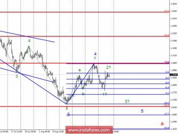 В ходе торгов 6 сентября пара GBP/USD набрала около 25 б.п., тем не менее, максимум предполагаемой волны 2 не был обновлен и при этом пара явно оставалась в стадии построения именно этой волны. Таким образом, я по-прежнему ожидаю завершения построения коррекционной волны 2, в 5, в а, так как было совершено уже 2 неудачные попытки прорыва отметки 23,6% по Фибоначчи. Если это предположение верно, то снижение котировок возобновится с целями, расположенными под 27 фигурой. Прорыв максимума предполагаемой волны 4, в а приведет к необходимости уточнения всей волновой разметки.