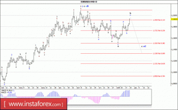 Инструмент продолжает построение первых волн в составе будущей C. На этой неделе возможно возобновление снижения котировок в рамках волны с, в а, в C с целями, расположенными около расчетных отметок 1,1510 и 1,1330, что соответствует 38,2% и 50,0% по Фибоначчи. Предполагаемая волна b, в С может быть завершена или близится к своему завершению.Материал предоставлен компанией InstaForex — www.instaforex.com
