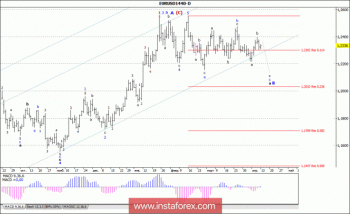 Инструмент предположительно завершил построение повышательного участка тренда. Волна b, в а, в В, в (С) также предположительно завершена. Если это действительно так, то понижение котировок продолжится с целями, расположенными около расчетных отметок 1,2032 и 1,1709, что соответствует 23,6% и 38,2%, в рамках волны с, в а, в В, в (С).Материал предоставлен компанией InstaForex — www.instaforex.com