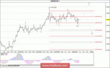 Продолжается построение повышательной волны А, в (С), внутренняя разметка которой продолжает усложняться. Предполагаемая волна 3, в 5, в А, в (С) усложнила свою внутреннюю волновую структуру и возобновила свое построение с целями, расположенными около 26 фигуры. Коррекционная волна 4 получается весьма сложной, но не должна уйти в своем построении ниже отметки 1,2344, что соответствует 23,6% по Фибоначчи. В противном случае потребуется уточнение внутренней структуры волны 3, в 5, в А, в (С).Материал предоставлен компанией InstaForex — www.instaforex.com