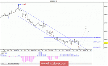 Инструмент перешел к усложнению внутренней волновой структуры волны а, в с, в b, в В, в С, в С, в (A). Таким образом, сейчас рекомендую продавать инструмент с целью, находящейся около 1,3414, что соответствует 127,2% по Фибоначчи, и ниже около 34 фигуры. Неудачная попытка прорыва отметки 1,3414 наведет на вывод о готовности инструмента к построению волны b с целями, расположенными выше отметки 1,3647, что соответствует 76,4% по Фибоначчи.Материал предоставлен компанией InstaForex — www.instaforex.com