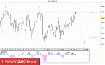 Продолжается построение нисходящей волны 4 в составе повышательного участка тренда. Сейчас возможно возобновление снижения котировок инструмента с целями, находящимися около расчетной отметки 1,2882, что соответствует 50,0% по Фибоначчи, в рамках волны с, в 4. Волна b, в 4 возобновила свое построение, усложнив свою внутреннюю структуру, с целями около 1,3291. Дивергенция MACD_ака предупреждает о готовности инструмента к построению нисходящей волны.Материал предоставлен компанией InstaForex — www.instaforex.com