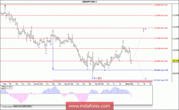 Только в конце вчерашней американской сессии пара USD/JPY смогла развить сколь-нибудь значимое нисходящее движение и к закрытию торгов пробить уровень 109-й фигуры. При этом можно предположить, что в результате такого снижения валютная пара уже завершила формирование 4-й волны, в 1, в с, в а, в (С). Если это так, то, сохраняя потенциал для трансформации всей волны с, в b, в а, в (С) в полноценную пятиволновую структуру и продолжения снижения цены к уровню 108,00, валютная пара может возобновить рост котировок, обозначив тем самым начало 5-й волны, в 1-й, в с, в а, в (С).