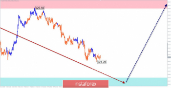Пояснения к рисункам: В упрощенном волновом анализе используется волны, состоящие из 3 частей (А-В-С). Для анализа используется 3 последовательных масштаба графика. На каждом из них анализируется последняя, незавершенная волна. Зоны демонстрируют расчетные участки с наибольшей вероятностью разворота. Стрелки указывают волновую разметку по используемой автором методике. Сплошным фоном показана сформированная структура, пунктирным – ожидаемые движения.