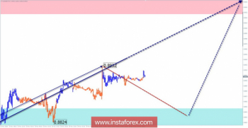 Пояснения к рисункам: В упрощенном волновом анализе используется волны, состоящие из 3 частей (А-В-С). Для анализа используется 3 основных ТФ, на каждом анализируется последняя, незавершенная волна. Зоны демонстрируют расчетные участки с наибольшей вероятностью разворота.