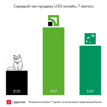 В то же время, по данным Gidulyan Company, сейчас только семь банков в Украине предлагают услугу онлайн-покупки валюты. Средний чек покупки доллара колеблется в пределах 110-160 долларов.