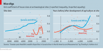 В один percenters сейчас уплетая больше пирога в Америке—это хорошо известно. Эта тенденция, хоть и обескураживает, не является уникальной для современной эпохи. Новое исследование, Тимоти колер из Университета штата Вашингтон и 17 других, считает, что неравенство может также повышаются уже несколько тысяч лет, по крайней мере в некоторых частях мира. Ученые обследовали 63 археологических раскопок и оценка уровней имущественного неравенства в обществе, чьи останки были выкопаны, путем изучения распределения размеров дома.